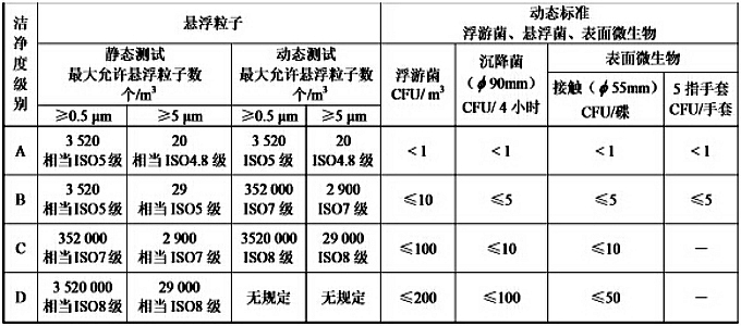 生產(chǎn)區(qū)的潔凈區(qū)分為A、B、C、D 4個級別,各個區(qū)域 潔凈度采納G際標(biāo)準(zhǔn)ISO 14644-1,明確占用狀態(tài)下不同關(guān)注粒徑時的**大濃度限值。