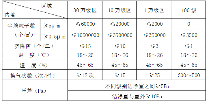表1 潔凈區(qū)環(huán)境控制標(biāo)準(zhǔn)