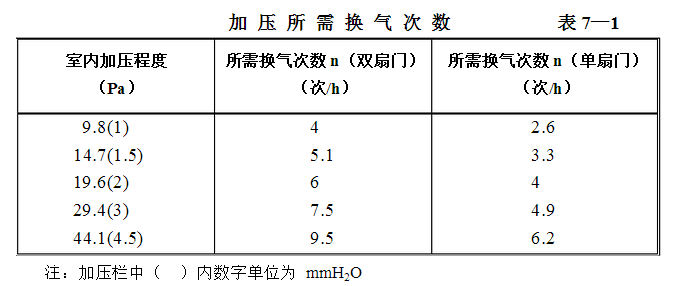 潔凈室內(nèi)加壓空氣量shou要決定于滲漏風(fēng)量,若以換氣次數(shù)表明加壓風(fēng)量,可參閱表7—1,在概算時,換氣次數(shù)取2-3次。