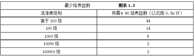沉降菌測定時,培養(yǎng)皿應(yīng)布置在有代表性的地點和氣流擾動極小的地點,培養(yǎng)皿數(shù)可與按附表1.1確定的采樣點數(shù)相同,但培養(yǎng)皿**少數(shù)量應(yīng)滿足附表1.2的規(guī)定。 #p#分頁標(biāo)題#e#