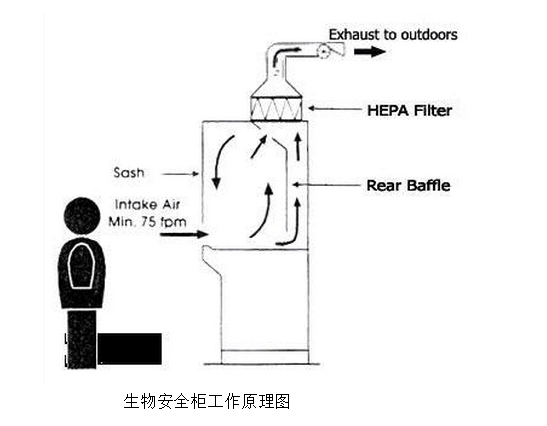 生物安全柜的頂部漏器上,從排風(fēng)量上可以分為,50%外排型,75% 以及100%外排型。在生物安全柜內(nèi)所形成的幾乎沒有微生物的環(huán)境中,盡量避免使用明火,酒精燈的火焰可能會影響室內(nèi)的氣流平衡。 以下是工作原理圖:.