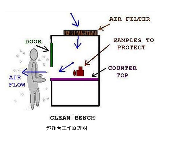 超凈臺是做一般對人體沒有直接傷害的常規(guī)細(xì)菌的操作實(shí)驗(yàn),正壓送風(fēng),工作臺工作區(qū)域的氣流形成為水平層流型。區(qū)內(nèi)空氣經(jīng)初效過濾器過濾后,由風(fēng)機(jī)壓入靜壓箱,再經(jīng)高效過濾器過濾,由此送出的潔凈氣流,以一定的均勻斷面風(fēng)速通過操作區(qū)將塵埃顆粒帶走,從而形成高潔凈的工作環(huán)境。超凈空氣的流速為24~30m/min,這已足夠防止附近空氣可能襲擾而引起的污染,這樣的流速也不會妨礙采用酒精燈或本生燈對器械等的灼燒消毒。