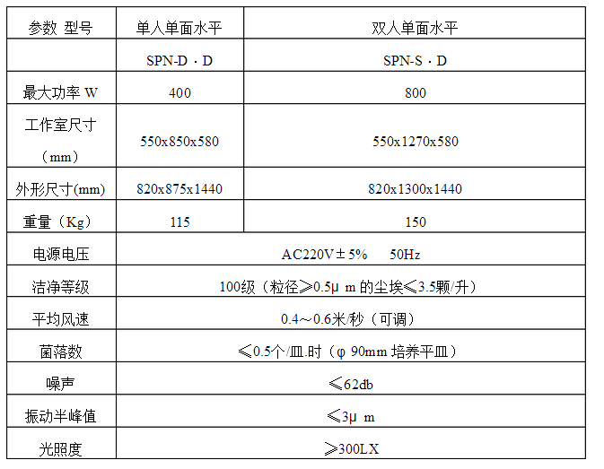 凈化工作臺(以下簡稱工作臺)是一種提供局部無塵、無菌工作環(huán)境的空氣凈化設(shè)備,對改善工藝條件和保證產(chǎn)品的高精度、高純度、高可靠性具有良好的效果。因此,廣泛應(yīng)用于醫(yī)療衛(wèi)生、制藥、生物、電子、G防、精密儀器儀表、化學(xué)實(shí)驗(yàn)等行業(yè)。 二、 主要技術(shù)參數(shù)