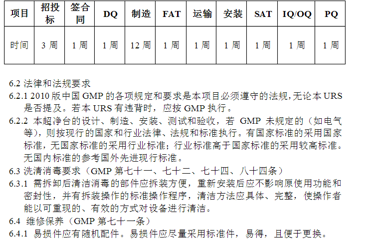 ⑦現(xiàn)場安裝調(diào)試的時間 ⑧做IQ、OQ驗證的時間 ⑨操作培訓(xùn)的時間